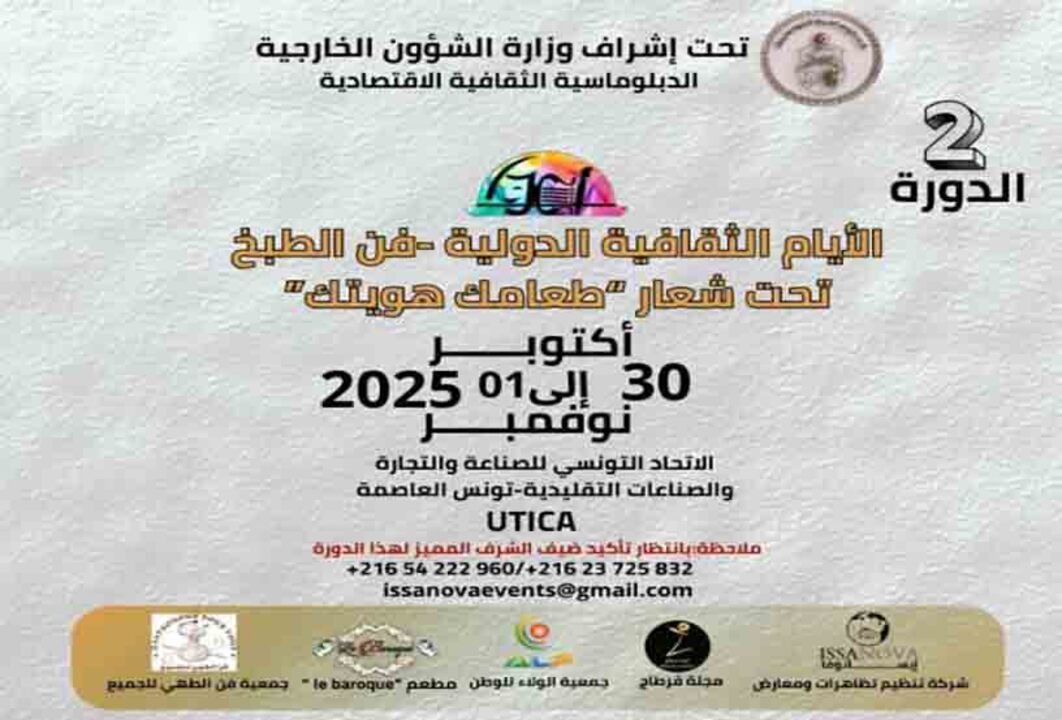 TAP - الدورة الثانية للأيام الثقافية الدولية – فن الطبخ من 30 أكتوبر إلى 01 نوفمبر2025