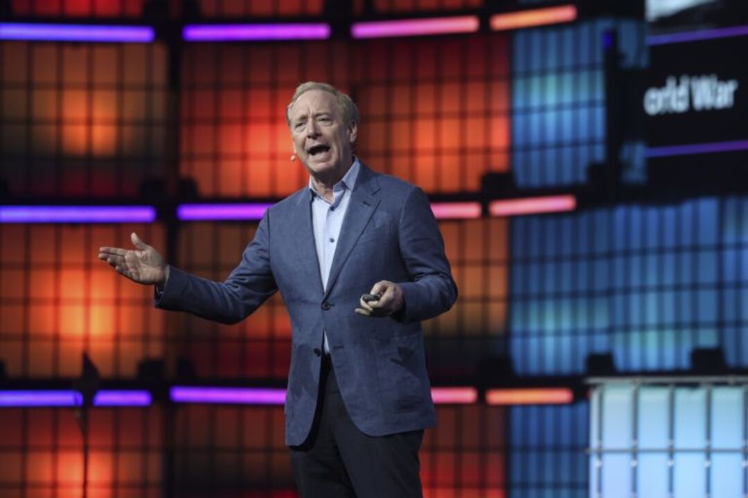 Microsoft President Brad Smith attends the conference "Extraordinary times" of the Web Summit Lisbon 2025, in Lisbon, Portugal, 11 November 2025. Web Summit 2025 is considered the largest technology conference in the world. The meeting brings together people from hundreds of fields: doctors who use apps to organize appointments, teachers interested in educational platforms, merchants looking to understand how digital technology attracts customers, designers, students seeking references, marketing professionals, researchers, curious minds, and even those who simply like to observe where the world is heading. ANTÓNIO PEDRO SANTOS/LUSA