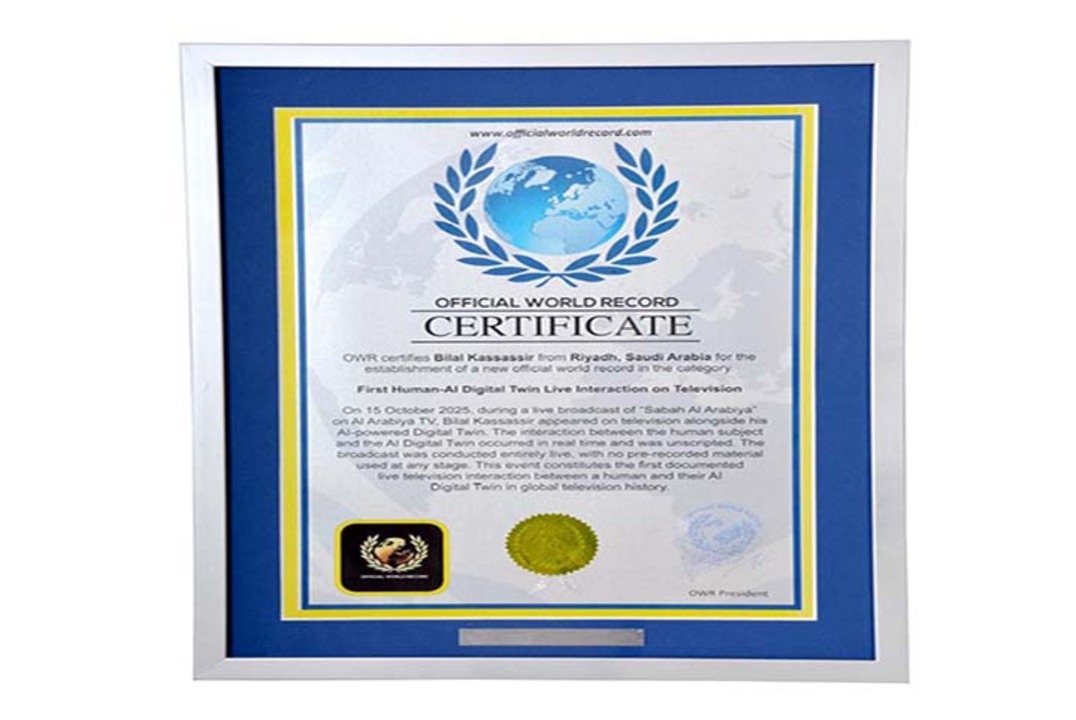وطنية - حقق الخبير الرقمي والذكاء الإصطناعي اللبناني بلال كساسير إنجازا عالميا حيث كان أول شخص يظهر على شاشة التلفاز برفقة توأمه الرقمي والتواصل معه مباشرة على الهواء، كما تم تسجيل هذا الإنجاز في Official Word Record وحاز على شهادة رسمية (certificate) من الجهة المذكورة.