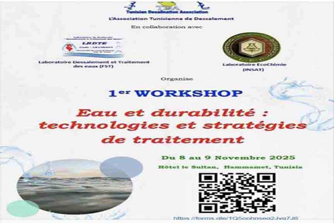 Tunis, Oct. 29, 2025 (TAP) – The first edition of a workshop titled “Water and Sustainability: Treatment Technologies and Strategies” will be held on November 8–9 in Hammamet, amid severe water stress in Tunisia, where per capita water resources have fallen below the scarcity threshold.