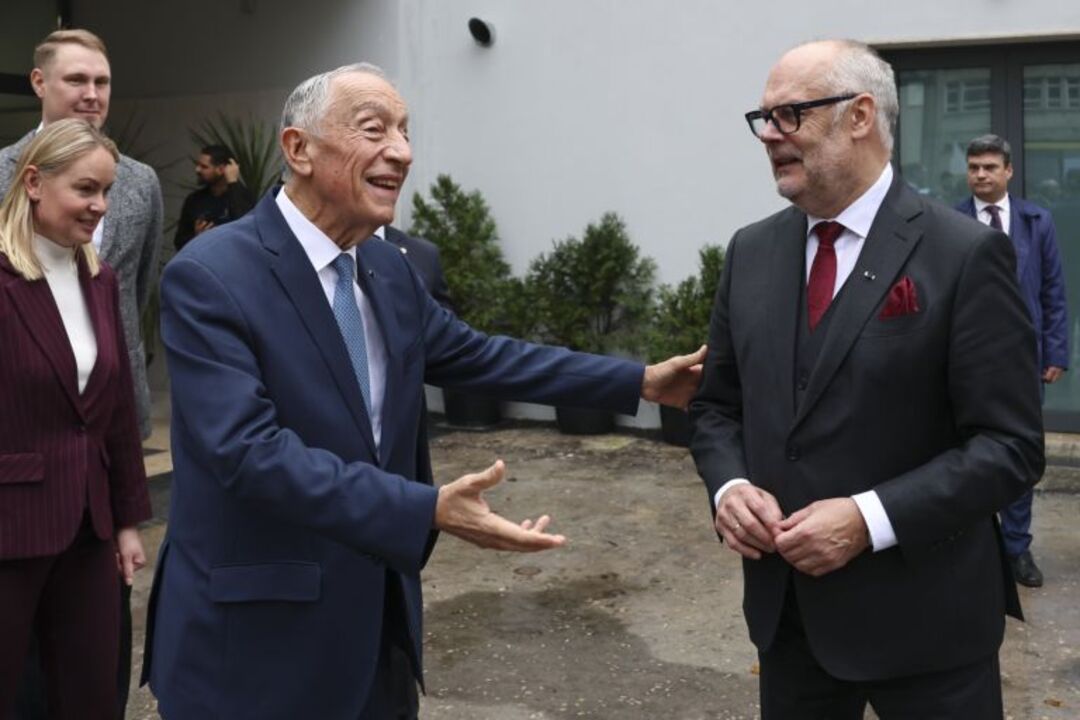 Estonia's President Alar Karis (R) his welcomed by Portugal's President Marcelo Rebelo de Sousa (C) upon arrival to attend the Estonia-Portugal Economic Forum in Lisbon, Portugal, 16 January 2026. ANTÓNIO COTRIM/LUSA
